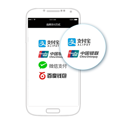 聚合支付,为iOS/Android原生/H5 App提供支付解决方案:支持微信支付、支付宝支付、银联手机支付、百度钱包等。
